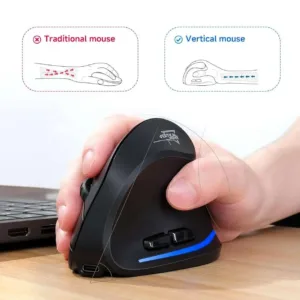 El ratón ergonómico vertical de 57° está diseñado para mejorar la postura de la mano y reducir la tensión muscular, ofreciendo una experiencia de uso cómoda y saludable. Disponible en gris oscuro, rojo y azul, es ideal para trabajo, estudio o uso prolongado.